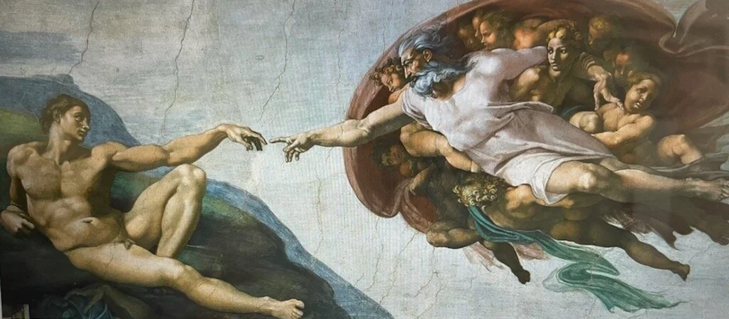 I cannot shake that image from the Sistine Chapel in Rome -- of God reaching out to touch Mankind. It is a fresco painting formally known as The Creation of Adam by Italian artist Michelangelo created in about 1508-1512.